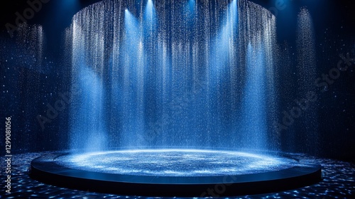 Spectacular water display with lights and mist creates a stunning visual experience in a darkened environment