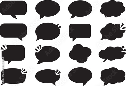 speech, thought, bubble, icon, grid, comic, dialogue, cloud, tail, oval, rectangular, pill, shape, black, minimal, vector, graphic, design, template, layout, communication, talk, thinks, idea, message, balloon, cartoon, abstract, flat, creative, stylised, clean, modern, visual, expressive, editable, outline, silhouette, concept, pop, media, storytelling, illustration, symbol