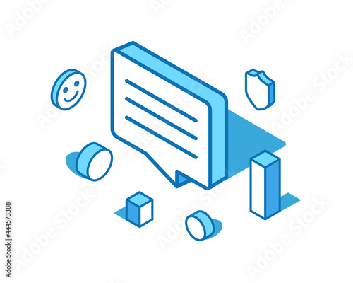 Speech bubble blue line isometric illustration. Review, feedback, comment 3D banner template.