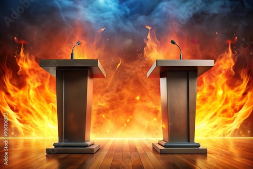 speech, dais, burn, fire, intense, debate, fight, talk, argue, flames, heat, hot, opponent, showdown, confront, confrontation, extreme, fierce