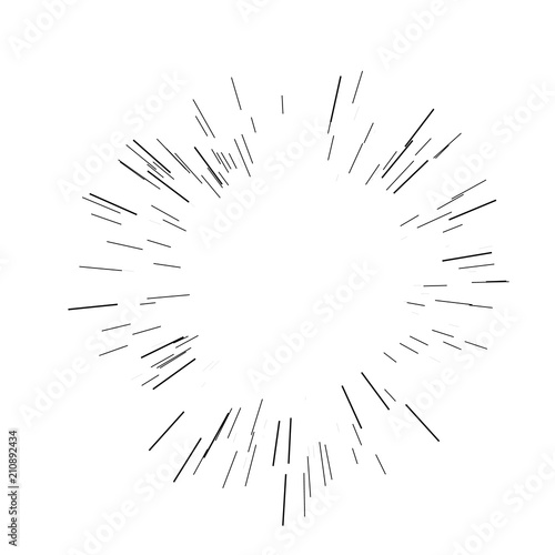 Speed lines. Radiating from the center of thin beams, lines. Vector illustration. Icon black on white. Design element.