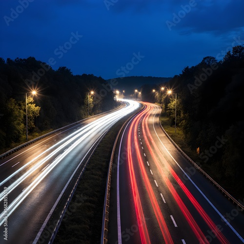speeding, car, create, forest, highway, light, trail, traffic, night, long, exposure, motion, speed, fast, blur, streak, vehicle, car, headlamp, rear lamp, road, roadway, expressway, expressway, expressway, lane, curve, bend, asphalt, pavement, street light, illumination, glowing, commute, transportation, travel, journey, evening, twilight, outdoors, countryside, tree, hill, landscape, nightscape, abstract, infrastructure