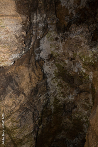 Speleology. The Bacho Kiro cave, Dryanovo, Bulgaria. Stalactite, and stalagmite speleothem formations.