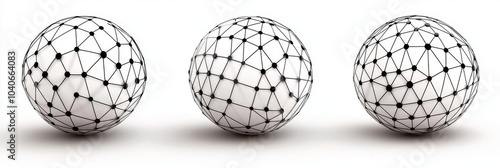 Spheres made from points and lines on a white background. Network connection structure. Big data visualization. Modern illustration.