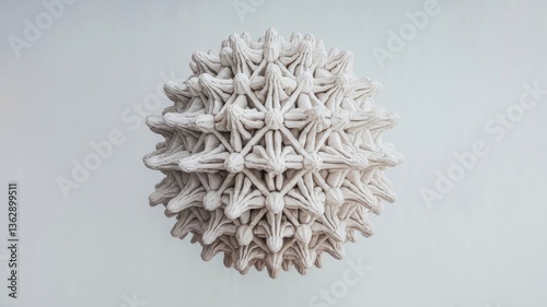 ball-shaped, structure, interconnected, layered, geometric, shape, texture, pattern, white, material, plastic, foam, three-dimensional, complexity, abstract, modern, design, intricate, minimalism, digital, art, futuristic, dynamic, clean