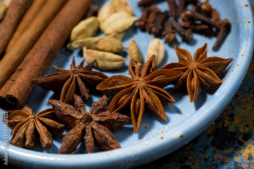 spice, tea, masala, cardamon, allspice, anise, cinnamon, ingredient, indian, beverage, food, drink, traditional, background, winter, star, clove, herb, organic, chai, therapy, black, health, stick, fragrant, oriental, asian, healthy, fresh