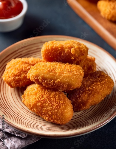 nugget, chicken, food, eatery, meat, diet, dinner, meal, cookery, snack, lunch, dish, sauce, grilled, roasted, fried, fat, calorie, poultry, ketchup, fast food, breast, breaded, fast, gold, fries, american, closeup, cooked, crispy, crunchy, delicious, eat, fresh, homemade, junk, piece, prepared, tasty, nugget, healthy, breakfast