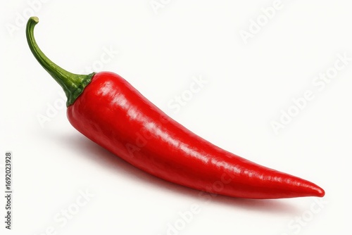 Spicy Red Chili Pepper: An eye-level shot of a vibrant red chili pepper, capturing its glossy texture and the contrast against the soft backdrop