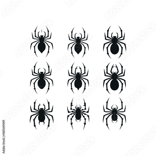 "Spider Silhouette Vector Set – Black Arachnid Insect Icons Collection"