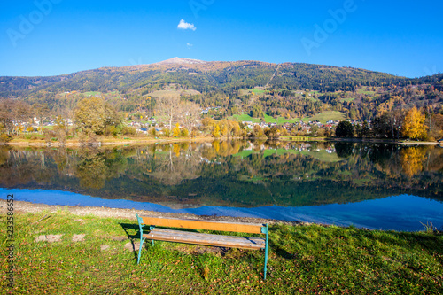 see, duck pond, fish pond, bench, ease, meadow, shore, bench, reflex, autumn landscape