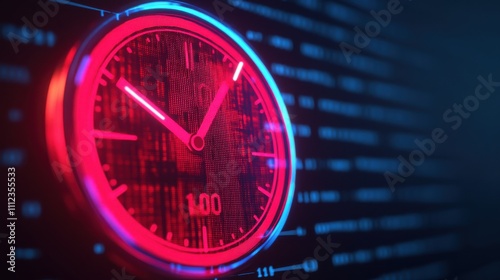 clock, spinning, transparent, hologram, digital, technology, display, light, effect, background, futuristic, design, time, round, interface, motion, graphic, colours, blue, red, virtual, eye-catching, modern, abstract, concept, information, datum, visual, animation