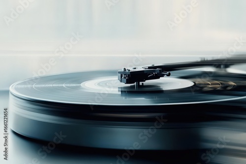 record, vinyl, turntable, spinning, music, audio, player, sound, disc, analog, entertainment, hobby, leisure, equipment, technology, motion, blurred, closeup, dark, modern, sleek, groove, listen, enjoyment, nostalgia, retro, classic, album, high fidelity, object, background