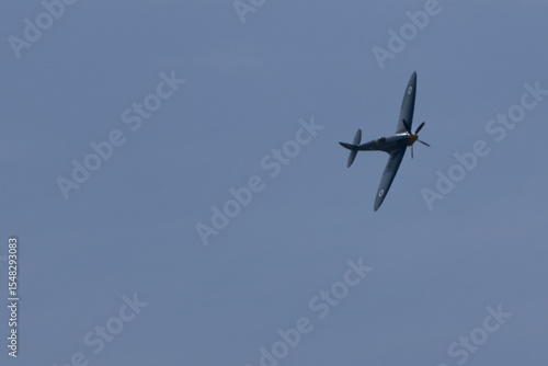 Spitfire plane in flight on sunny day. High quality photo