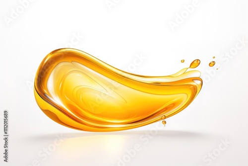 Splashes and drops of liquid oil. Fresh Olive or motor engine oil eco nature golden color close-up. Shine yellow Cosmetic oil or Cosmetic Essence Liquid drop. 3d render