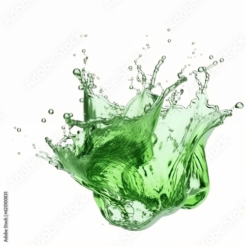 Splashing And Flowing Of Green White Water Isolated On White Background. Generative AI