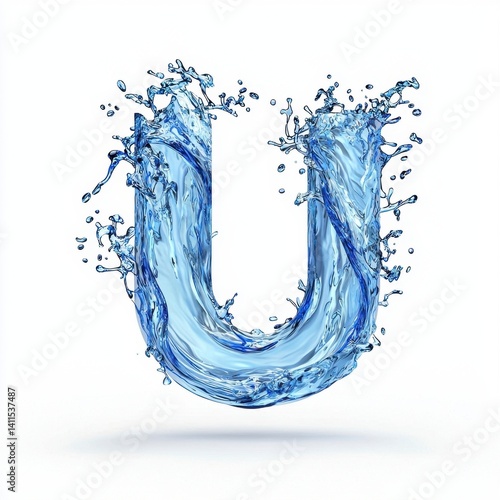 Splashing Water Letter U in Bright and Vibrant Style for Design Use