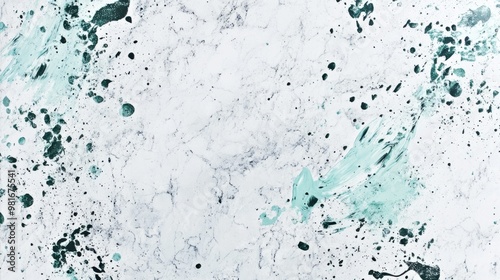 Splattered mint green paint on grey marble, fresh abstract background generative ai