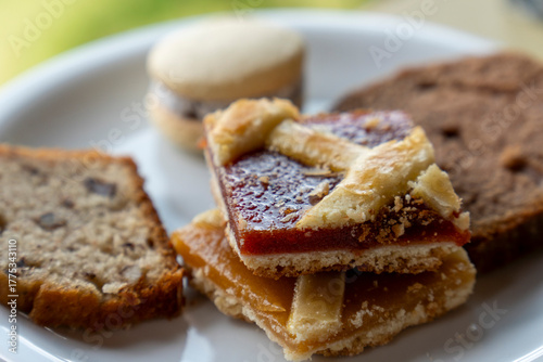 Sponge cake jam pie Breakfast on table in hotel of La Patagonia Calafate Argentina
