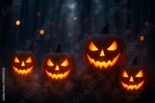 halloween, forest, pumpkin, lantern, jack-o-lantern, lantern, skittish, glowing, atmosphere, mysterious, timberland, evening, eerie, fall, decoration, night, scene, autumn, tree, haunting, celebration, magic, tradition, seasonal, festivity, dark, october, holiday, creepy, enchanted, fog, shadow, chilling, mythical, uncanny, nature, light, party, festival, concept, enchanting, scarey, horror, nightmare, fear, thriller, haunted