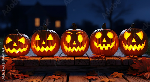 Spooky Halloween Night Jack-o'-Lanterns and Festive Autumn Ambiance