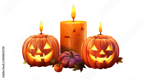 Spooky Halloween pumpkins and candle lit scene with glowing faces, autumn leaves, and a vibrant display for festive celebrations and holiday decor