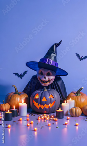 halloween, pumpkin, sorcerer, costume, skittish, autumn, fall, celebration, holiday, decoration, candle, mask, hat, bat, orange, black, purple, festive, scarey, party, event, seasonal, decorative, atmosphere