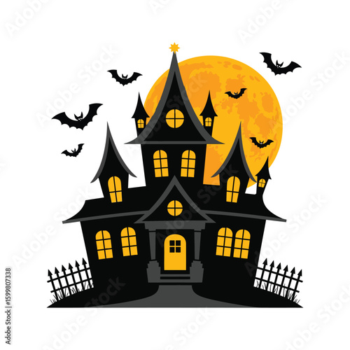 halloween, bat, full moon, skittish, night, dark, creepy, gothic, architecture, illustration, vector, fence, grass, scarey, celebration, holiday, autumn, folklore, fantasy, supernatural, eerie, house, moon, castle, bat, silhouette, haunted, cartoon, horror, tree, pumpkin, evil, cemetery, ghost, black, cat