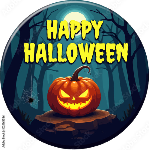 Spooky Jack-O'-Lantern Halloween T-Shirt Design with Eerie Forest Background