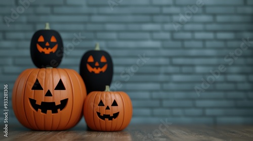 Spooky Pumpkin Family in Cozy Home - Halloween Decorations with Copy Space for Text