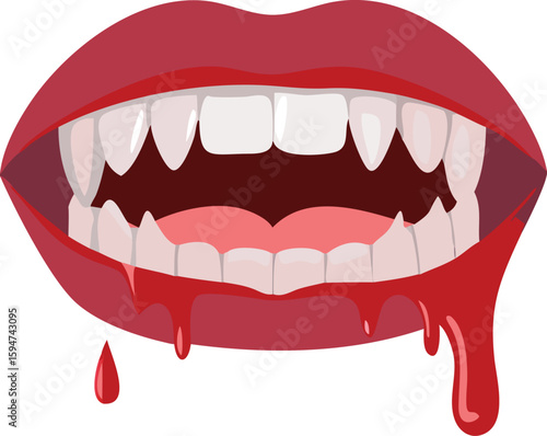 vampire, fang, blood, lip, mouth, teeth, dripping, halloween, horror, skittish, scarey, monster, undead, dracula, costume, make-up, cartoon, illustration, vector, graphic, red lips, creepy, fantasy, gothic, creature, biting, open mouth, grinning, evil, dark, white teeth