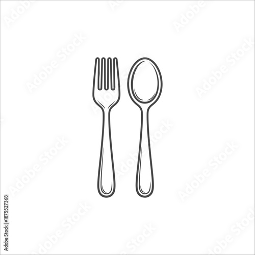 spoon, fork, menu, kitchen, crossed, icon, vector, eatery, illustration, symbol, eat, dinner, lunch, cutlery, cook, meal, silver, food, design, cooking, serving, setting, steel, tool, plate, knife, antique, vintage, art, retro, set, drawing, cafes, catering, table, dish, silverware, utensil, graphic, simple, line, outline, minimal, contour