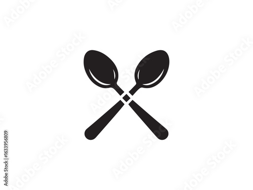 spoon, silhouette, crossed, utensil, cutlery, kitchen, cooking, black, icon, vector, isolated, minimal, flat, shape, dining, food, tool, realistic, clean, white, metal, object, equipment, kitchen utensile, pan, silver, plastic, fork, steel, empty, handle, spatula, frying, eatery, cook