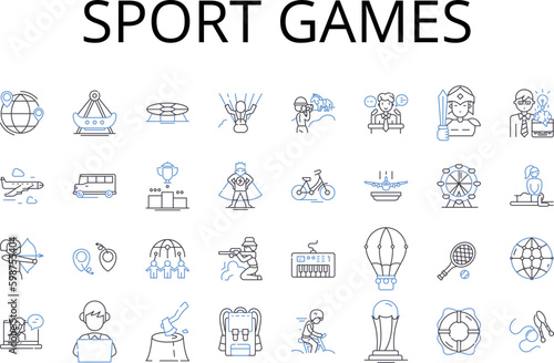 Sport games line icons collection. Athletic contests, Athletic events, Competitive activities, Physical competitions, Physical contests, Playoffs, Sporting events vector and linear Generative AI