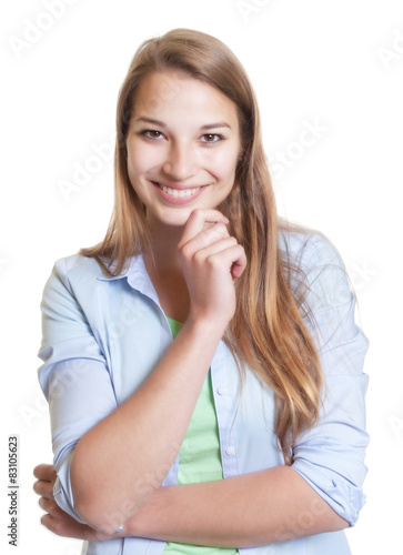 laugh, woman, young, student, fun, blond, hair, pretty, laid back, fun, training, man, person, single, flirting, flirt, isolated, female, white, teeth, athletic