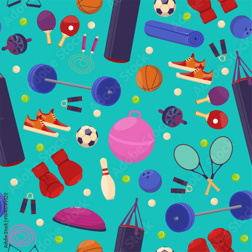 sport, fitness, seamless, equipment, exercise, athletic, pattern, gym, activewear, training, barbell, tennis, racket, ball, boxing, bag, activewear, glove, sneaker, basketball, clothing, badminton, activity, game, ping, fit, kickboxing, weight, pong, dumbbell, yoga, physical exercise, shuttlecock, athlete, healthy, baseball, sportive, print, championship, tournament, football, sportsman, textile, wrapping, wallpaper, repeat, background, vector