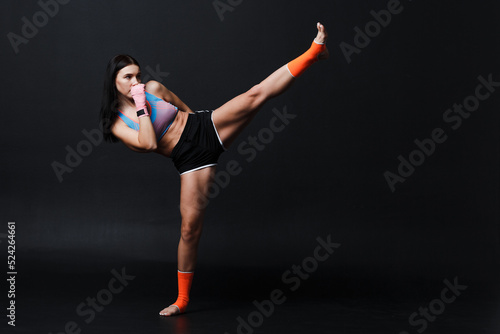 high, leg, kick, woman, thai, boxer, background, black, space, fighting, boxing, training, sport, kickboxing, female, adult, strong, strength, power, person, fit, fitness, girl, young, white, healthy, exercise, fighter, health, athletic, body, physical exercise, punch, model, hit, art, martial, box, studio, pose, fist, up, stretch