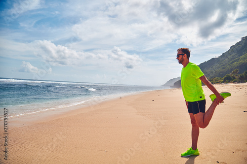 running, jogging, exercising, exercise, sport, training, ocean, sea, tropical, water, beach, sand, shore, outdoors, man, athlete, young, runner, coast, male, guy, person, activity, summer, nature, body, physical exercise, working out, stretching, healthy, exotic, caucasian, sportsman, sunglasses, sneaker, shoe, fit, slim, photogenic, leg, knee, injury, warm up, pain, sleepy