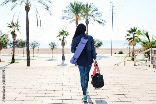 sportswoman, backview, exterior, walking, exercise, vitality, energy, urban, effort, unrecognizable, city, tropical, carry, training, body, sunlight, bag, summer, athletic, style, athlete, street, anonymous, activewear, sportive, activity, sport, solitude, slim, runner, rolled, rest, ready, prepared, outdoors, motivation, morning, modern, mat, lifestyle, leisure, jogger, tree, holding, health, copy space, fitness, physical exercise, fit, wellness, caucasian, white, woman, girl, female, person, people, adult, adult, 20s, grown-up
