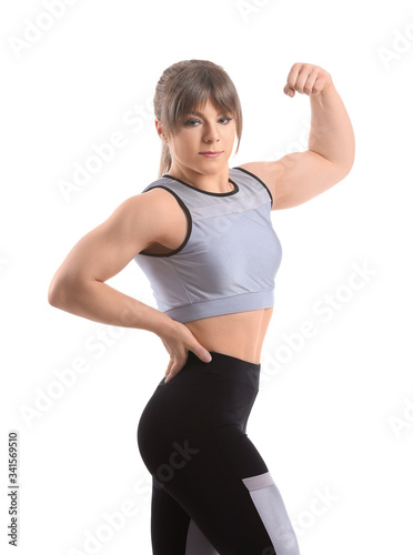 Sporty muscular woman on white background