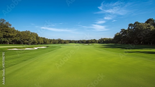 sprawling lawn under a bright blue sky, forming the expansive grounds of a large golf park