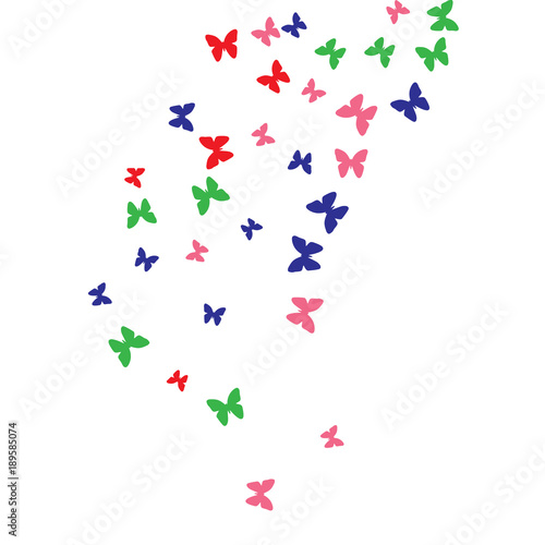 Spring Background with Colorful Butterflies. Simple Feminine Pattern for Card, Invitation, Print. Trendy Decoration with Beautiful Butterfly Silhouettes. Vector Background with Moth