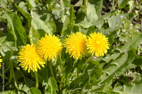 Spring field with dandelions