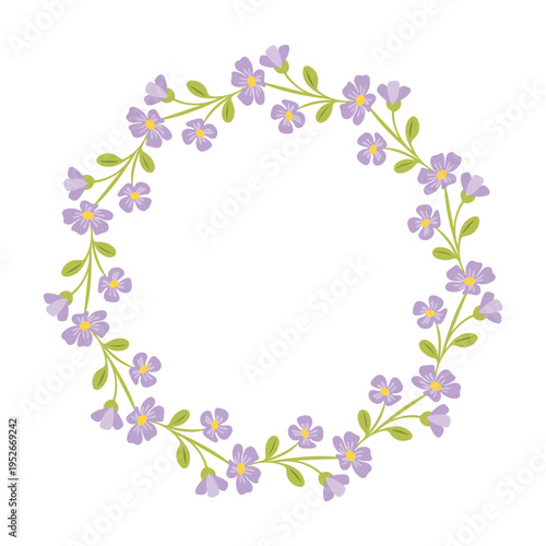 chaplet, flower, purple, floral, frame, circle, spring, nature, meadow, bloom, blossom, leaf, tree branch, plant, decoration, border, element, wedding, invitation, card, greeting, romantic, botanical, ornament, doodle, hand-drawn, sticker, icon, simple, minimal, flat, vector, illustration, isolated, white, background