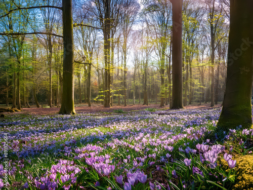 spring, forest, nature, flower, flower, landscape, bluebell, tree, tree, wood, wood, garden, plant, park, wild, blue, grass, summer, timberland, flora, springtime, season, meadow, pink