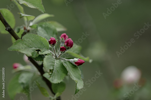 Spring time. Blossoming branches of an apple tree. Selective focus.