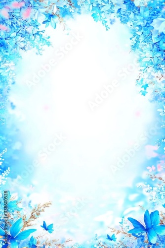 Spring watercolor flowers in blue hue on a pristine white background.