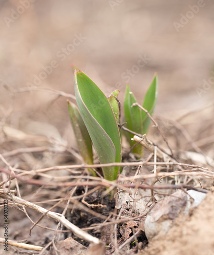 sprout tulip in nature. macro