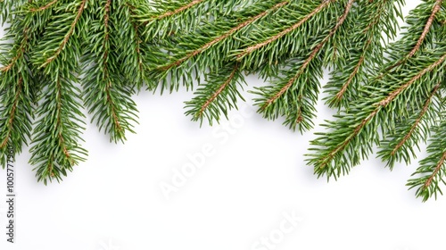 Spruce branches border, isolated on white background