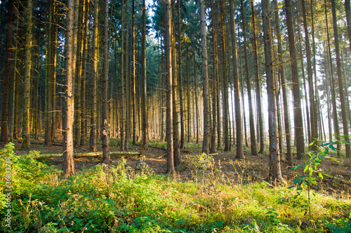 Spruce forest in the early morning light