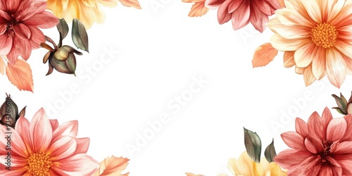 Square frame of dahlias in watercolor ideal for cards and backgrounds Hand drawn floral design suitable for scrapbooking and wedding invitations